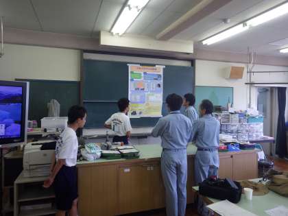 高校の先生も3名ほど参加され、研究協議ではいろいろな意見が出ました。研究協議終了後に、科学部が東京で発表した研究ポスターについて高校の先生や堺市環境局の方、高校生から質問があり、3年生の部長が答えていました。