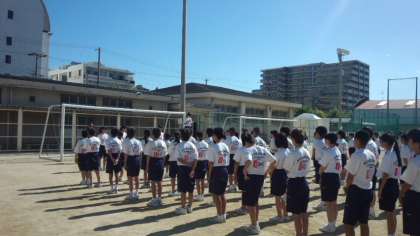 今日は2年生の水泳大会です。開会式も終わり、まもなく競技が始まります。