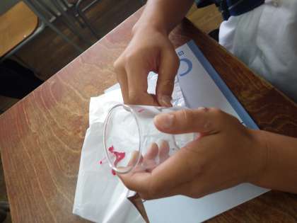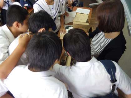 修学旅行の選択体験活動(ガラス作り体験)で3年生が作成したコップが学校に到着したので、体験した生徒に届けました。