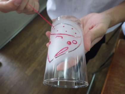 赤い部分をこすると自分のデザインが映っているガラスのコップの完成です。