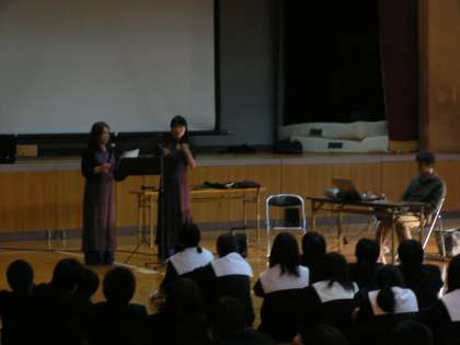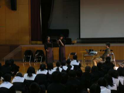 1年生に地域の事業所の方が、講話とリコーダーの演奏をしていただきました。