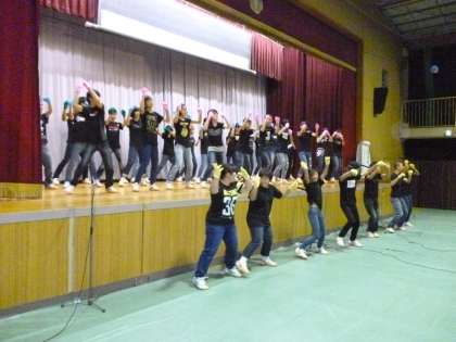 写真は 2年生ダンス 1年生全体合唱 3年生劇