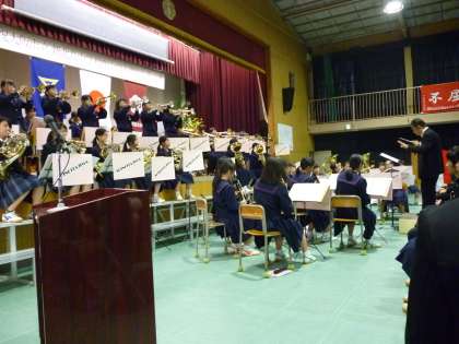 住之江区長様をはじめ多くの来賓、保護者の方にご参加いただき誠にありがとうございました。吹奏楽部の記念演奏が式典に花を添えました。