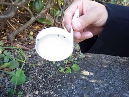 10月31日に平林地区、11月3日に新北島地区のアリのモニタリング調査を行いました。アルゼンチンアリは大和川の堤防を中心に見つかりました。地域の人から『アルゼンチンアリの巣を見つけたら液体の駆除剤を撒いていますよ。頑張ってください。」と声をかけてもらいました。