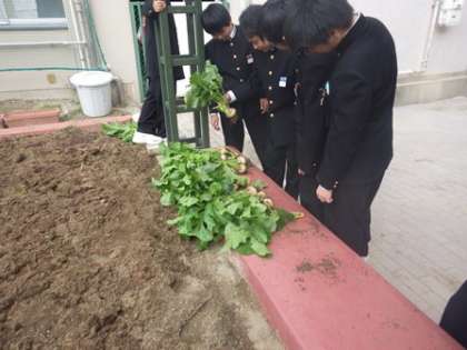 また、科学部で栽培していた天王寺蕪が大きくなったので収穫しました。部員で持ち帰ったのと、一部お世話になった先生に配布しました。