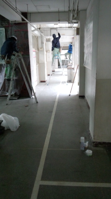正門すぐの1階廊下の塗装を成南校園営繕園芸事務所の方のご協力で本校の管理作業員が行っています。来週金曜まで行う予定です。