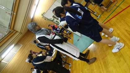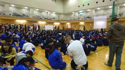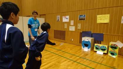 C-NET(外国人の先生)の先生方が考えた外国のゲームや文化を知るさまざまなアクティビティーを体験しました。市内の中学生300名ほどが参加し、とても活気ある行事でした。普段、半日英語で過ごす体験がないので、帰りは少し疲れている様子でしたが、多くの生徒が「また来年も参加したい」との感想でした。
