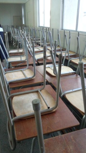 そのため、一度机をすべて廊下に出して掃除をします。そのあと油をひいて乾いてから机を中に入れます。