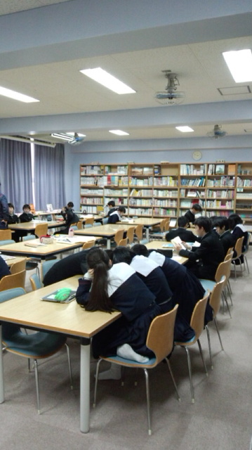 3年生は進路懇談の間に午後の時間を利用して面接練習を行います。図書室で勉強しながら面接の順番を待っています。