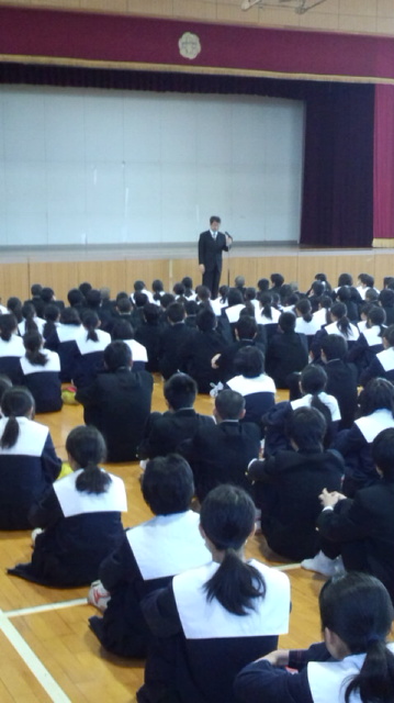 の大切さを教えていただきました。これらは、周りに迷惑をかけない、チャイム着席、掃除などの学校生活で身に付けることができます。みなさん、この三点に気を付けて学校生活を送ってください。