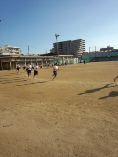 寒い時期ですが生徒たちは、体育の授業で長距離走に取り組んでいます。寒さに負けずに頑張っています。