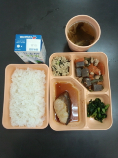 今日の給食です。鰤の照り焼きがおいしそうですね。