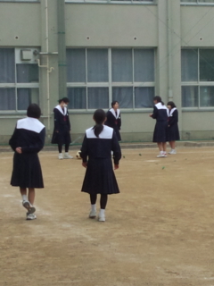 雪がちらついてるにもかかわらず、生徒たちはとても元気です。