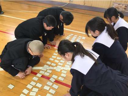 本日は1年生の百人一首大会がありました。結果は木曜日の学年集会で発表します。楽しみにしながら待っていてください。
