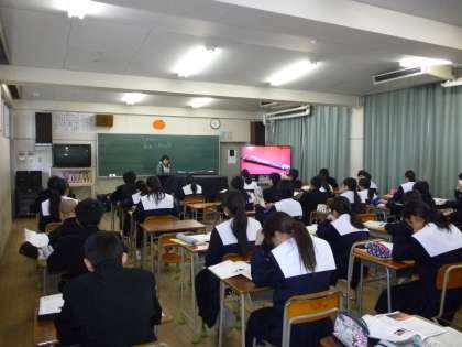今日の6時間目に1年生の授業で研究授業を行いました。