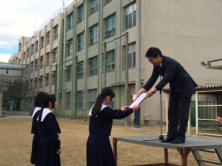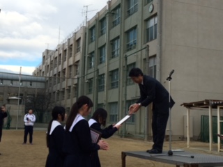 本日の全校集会で吹奏楽部の表彰がありました。