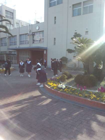 今日も朝から新北島中学の教職員や生徒は元気に活動しています。