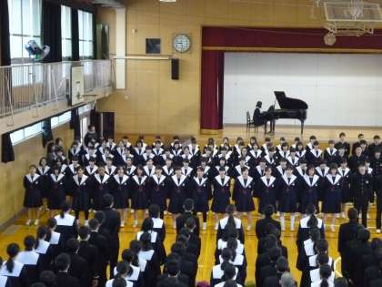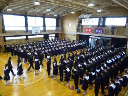 お別れ集会が行われました。卒業式には在校生の代表が参加となります。8日は全生徒が参加して3年生徒とのお別れをしました。