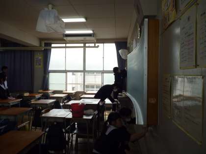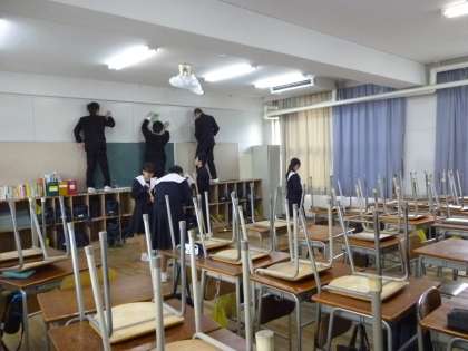 23日の4時間は大掃除を行いました。次の学年の人が気持ちよくい使えるように心を込めて掃除をしています。