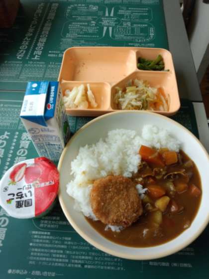 今日の給食はカツカレーです。