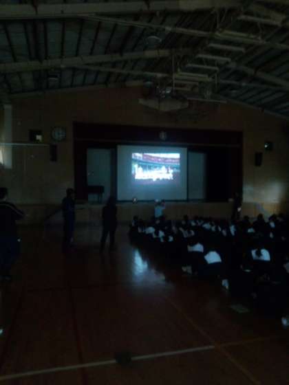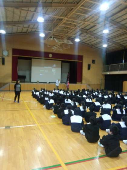 6時間目に部活動紹介がありました。明日から体験入部が始まります。どのクラブに体験入部するか一生懸命考えて見ています。