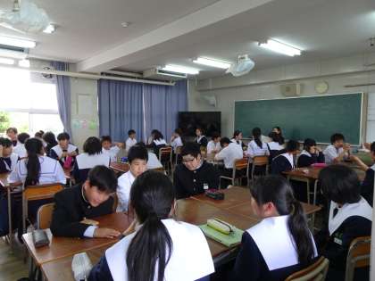 *本日の6限、1年生は班編成を行いました。連休前に実施したアンケートを元に、立候補や推薦で選出された班長が、放課後遅くまで班長会議を行って班を決めてくれました。今日はその班の発表の後、各班での役割決めや教室での座席決めなどを行いました。