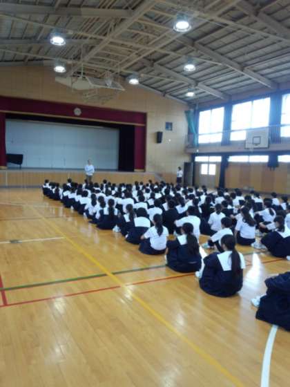 学年集会では今週月曜日「いじめについて考える日」から一週間をふりかえって一人ひとりどう過ごしたかということについて話がありました。