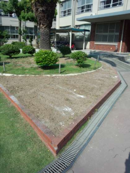 19日のふれあい緑化活動に備えて、本日の昼休みにボランティアによる準備が行われました。19日にきれいな花を植えるために花壇を整地しました。