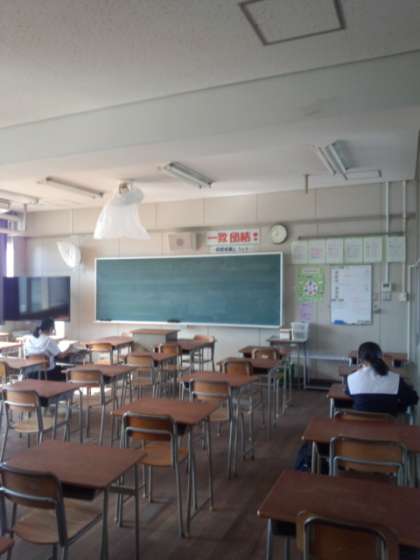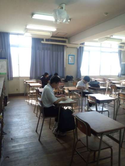 まだ。8時前ですが、すでに登校して最後の確認をしていますね。良い結果が出るように頑張っています。