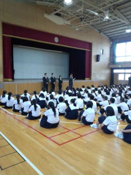 今日から、3人の教育実習生が本校に来ます。全校集会では