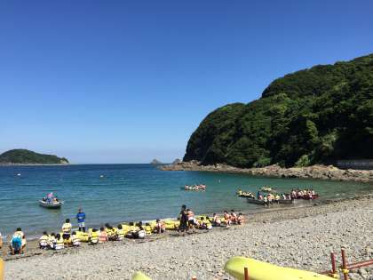 *一泊移住二日目。大きなトラブルもなく、美しい青空の元、元気に海での活動が始まりました。二日目ともあり、一日目よりも円滑に準備ができていました。あと半日で、どれだけのことが吸収できるでしょうか。44期生のみなさん、頑張ってください。