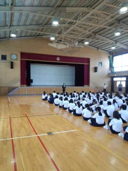 学年集会では、教育実習生のからの話がありました。
