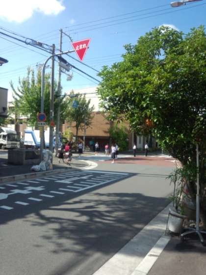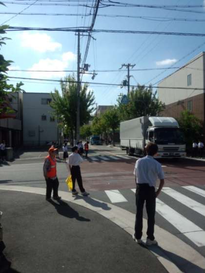 毎週火曜日はサッカー部が地域方と一緒に登校指導・挨拶運動をしています。