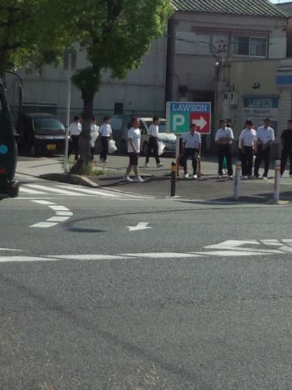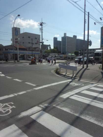 新北島中学校の交通安全マップです。特に写真のローソン前は交通量が多く、毎朝、本校の生徒指導の先生が生徒の安全のために登校指導をしています。