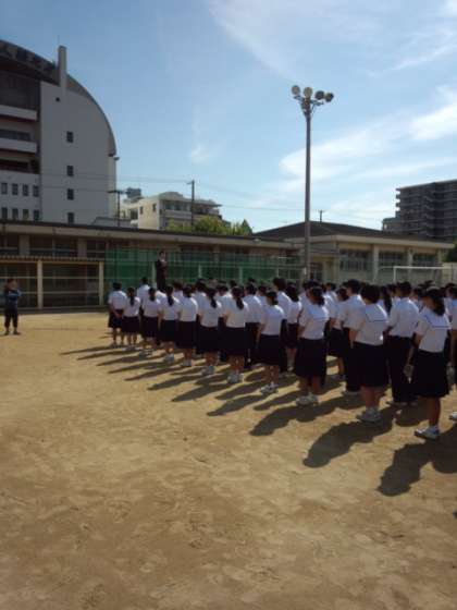 今日は3年生の学年集会があり、教育実習生の方からのお話がありました。話の中で自分はいつも笑顔でいるような人になるようにがんばっている。その笑顔を周りの人にも広げたい。というお話がありました。