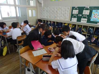 *本日の6限は、各学級で一泊移住報告会の取り組みがありました。2回目の取り組みということで、班によっては完成しつつある所もでてきているようです。教育実習の先生も一緒に取り組んでくれていました。当日の発表は、一班3分以内という制限がありますが、実際にできあがった原稿を読むと、思ったよりも短かったり…みなさん悪戦苦闘しています。当日までにはあと2回取り組みの時間を設けています。残りの取り組みで、さらに良いものができるよう、各班で協力してがんばってください。なお、三週間お世話になった教育実習の先生方は、明日で実習最後の一日となります。最後までしっかりと実習に取り組んでもらえるよう、授業などで協力してもらえればと思います。