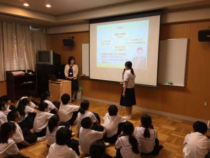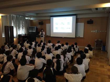 *本日の6限、1年生は多目的室でNTTドコモの方をお招きし、「スマホ・ケータイ安全教室」を行いました。4月に一度実施した情報モラル教育に引き続き、身近にある「スマホ」や「ケータイ」の安全な使い方、便利さの裏に潜む危険についてお話しいただきました。4月の取り組みの際に実施したアンケートで、44期生の携帯電話及びスマートフォンの所有率は9割を超えていることが分かりました。もはやみなさんの周りに「当たり前」にあるスマホですが、正しい知識を持って使用しなければ、常に危険と隣り合わせにあります。今日の取り組みの中では、実際に起こりうる危険を、わかりやすいVTRにまとめて示してくださっていました。一人一台のスマホが「当たり前」の時代なのであれば、「どのように持つか」、その適切な付き合い方を考えていければよいですね。