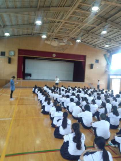 今日は1年生の学年集会がありました。学年集会では今日の3,4時間目にあるレクレーション大会についての説明がありました。