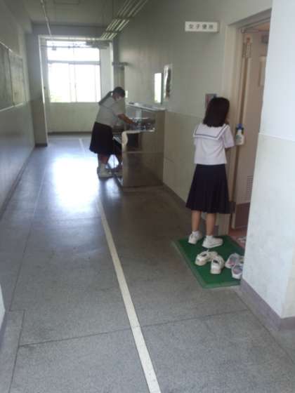 1学期の最後ということで教室、廊下、トイレなどの清掃を全生徒で行いました。