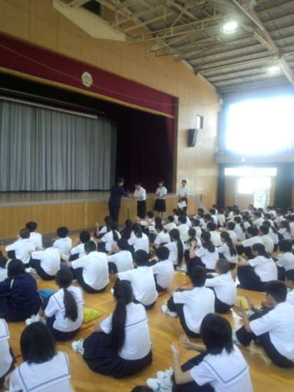 社会を明るくする運動での作文と標語の作品の表彰がありました。