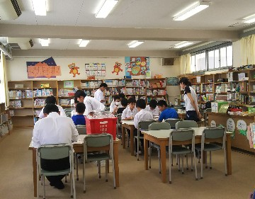 中学生が小学生を教えてペットボトルロケットを作って飛ばします。小学生に科学的な興味や面白さを感じてもらうことと、中学生に教えることの面白みや責任感をもってもらうことを目的にしています。午後は新北島小学校でも実施します。