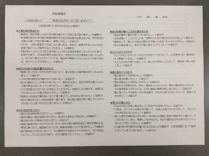 *本校では、毎年8月6日に平和登校日を設けています。かつての戦時中、広島に原爆が投下された日に、戦争や平和について考える取り組みを行っています。今年は8月6日が日曜日に当たるため、本日8月4日に日を代え、各学年で平和登校日が実施されました。