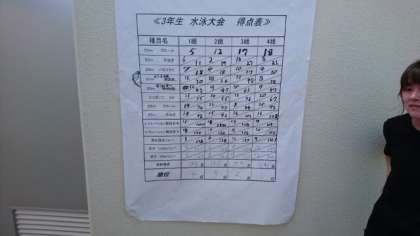 最終結果です。4組の優勝でした。暑いなかみんな頑張りました。体育委員が中心でよく頑張りました。