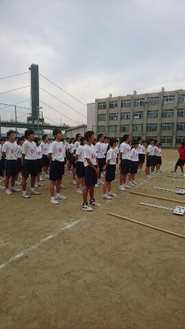 本日3年学年練習が昼から行われています。日差しもなく練習にはいい天候になりました。5時間目は行進からです。体操や校歌もがんばっています。