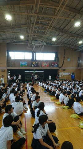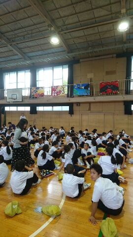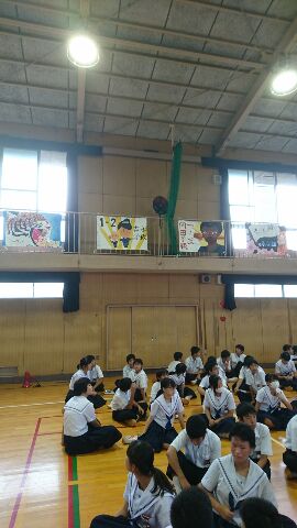 体育大会の学級旗コンクールが行われています。遅くまで残って作業した成果が出ています。結果は予行の時に発表されます。