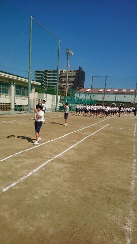 本日午後全体練習の2回目です。行進、校歌、体操から開会式の練習や退場して座席の確認と閉会式への流れを練習しました。天気が良すぎて暑いくらいですが、体育大会の成功に向けて暑さに負けずがんばっています。