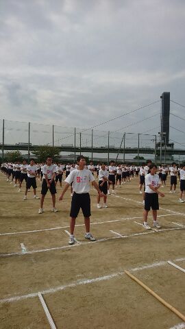 金曜日の体育大会の予行が行われています。暑すぎるくらいのいい天候になりました。暑いなか懸命にがんばっています。