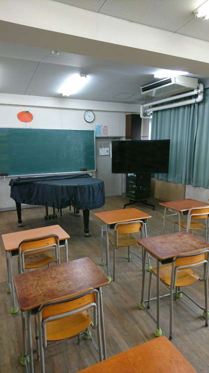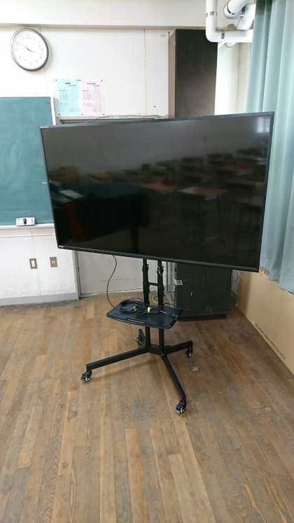 普通教室には大型液晶テレビが整備されていますが、音楽室には整備されていませんので、今回、新たに65型の大型液晶テレビを1台購入しました。