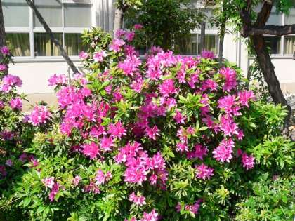 校門付近・ふれあいガーデンの花々と、授業風景です。