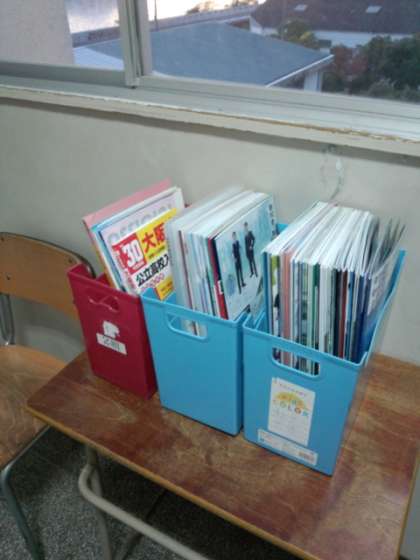 3年生の進路懇談が行われています。懇談を待つ時間に高校などのパンフレットを見ていただけます。